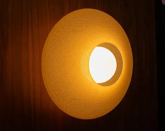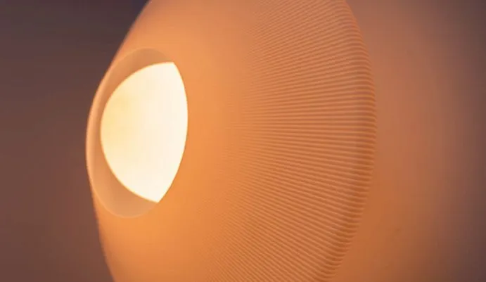 giraffe has developed a proprietary light-diffusing off-white plastic material that is designed to resemble Japanese paper lights. The plastic looks and feels like antique paper and is made from recycled plastic in Canada.